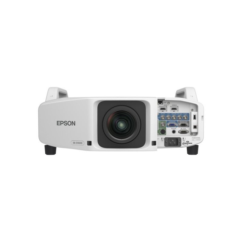 Videoproiector Epson EB-Z10000. Tehnologie 3LCD, Obturator RGB cu cristale lichide; Panou LCD: 1,06 inchi cu MLA (D8); Luminozitate culor: 10.000 Lumen - 7.600 Lumen (economic); Luminozitate albă: 10.000 Lumen - 7.600 Lumen (economic); Rezoluțadică: XGA, 1024 x 768, 4: 3; Lampă: 340 L, 2,500 h Viață utilă, 3,500 h Viață utilă (În modul economisire energie); Corecție Keystone: Manual vertical: ± 30 Â °, Manual orizontal ± 20 Â °; Raport proiecțadică: 1,63 - 2,65: 1; Zoom: motorizat, factor: 1, 1,61; Dimensiuni proiecțadică: 60 inci - 500 inci; Unghi larg distanță proiecție: 1,9 m - 16,8 m; Distanță proiecțadică tele: 3,2 m - 27,2 m; Numărul F al lentilei de proiecție: 1,65 - 2,51; Distanță focală: 36.000 mm - 57.000 mm; Focus: Motorizat; Conexiuni: RS-232, Intrare VGA, Ieșire VGA, Intrare HDMI, Intrare compus semnal, Intrare BNC, Intrare S-Video; Securitate: Protecțadică Kensington; Caracteristici: Tehnica DeepBlack, Filtru Epson Cinema, Žnghețsunt imaginate, Pornire / oprire automată, Administrare rețea, Quick Corner, Distorsiune redusă video, Control pentru axe de top, Funcție ecran partajat; Culoare mod: Dinamic, sRGB, Teatru; Consum de energie: 950 Wați, 790 Wați (economic), 0,5 Wați (În Standby); Nivel de zgomot: Normal: 40 dB (A) - Economic: 35 dB (A); Software Încorporat: Monitor EasyMP, proiecție EasyMP Multi PC, proiecție rețea EasyMP; Pachetul include: Capac pt. conector, Capac obiectiv.